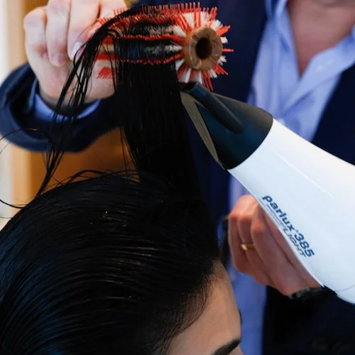 7 Blow-dry by wrapping the hair around the brush and then moving the brush up toward the scalp. Twist the brush as you release the hair to create a curl. “Focus on the base first to get all the moisture out,” advises Anthony.